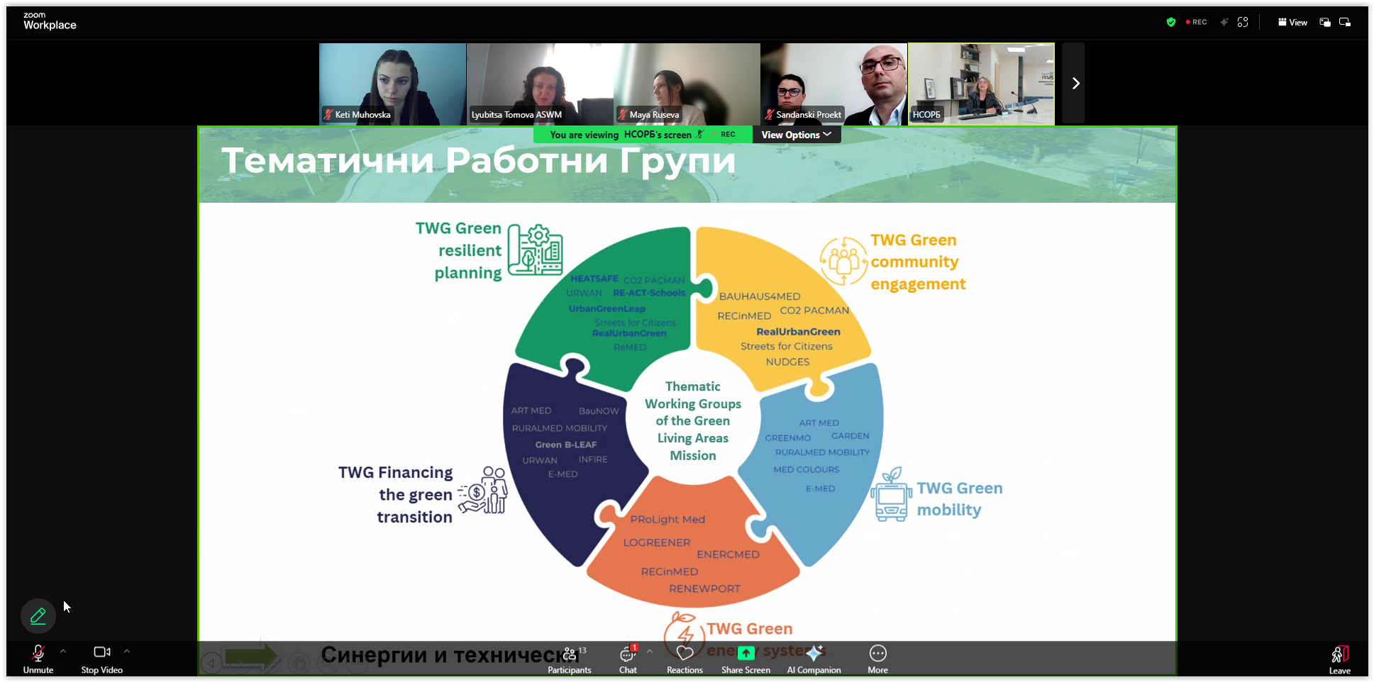 On 26 March 2026, the Second Meeting of the Bulgarian partners in the Thematic Projects within the Green Living Areas (GLA) Mission of the Interreg Euro-MED Programme was held online by the National Association of the Municipalities in Republic of Bulgaria. Experts from several regions in Bulgaria participated, representing specific sectors such as environmental protection, sustainable energy, climate change, and policy-making.